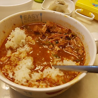 저는 얼큰한것으로 시켰는데요. 국물이 괜찮더라고요. 해장국을 살짝 먹는 느낌이 들었는데요. 전날 술을 마셔서 그런지 해장으로 아주 좋았네요. 이마와 머리에 땀이 아주 송골송골 맺치면서 사우나를 하는 느낌이었답니다.