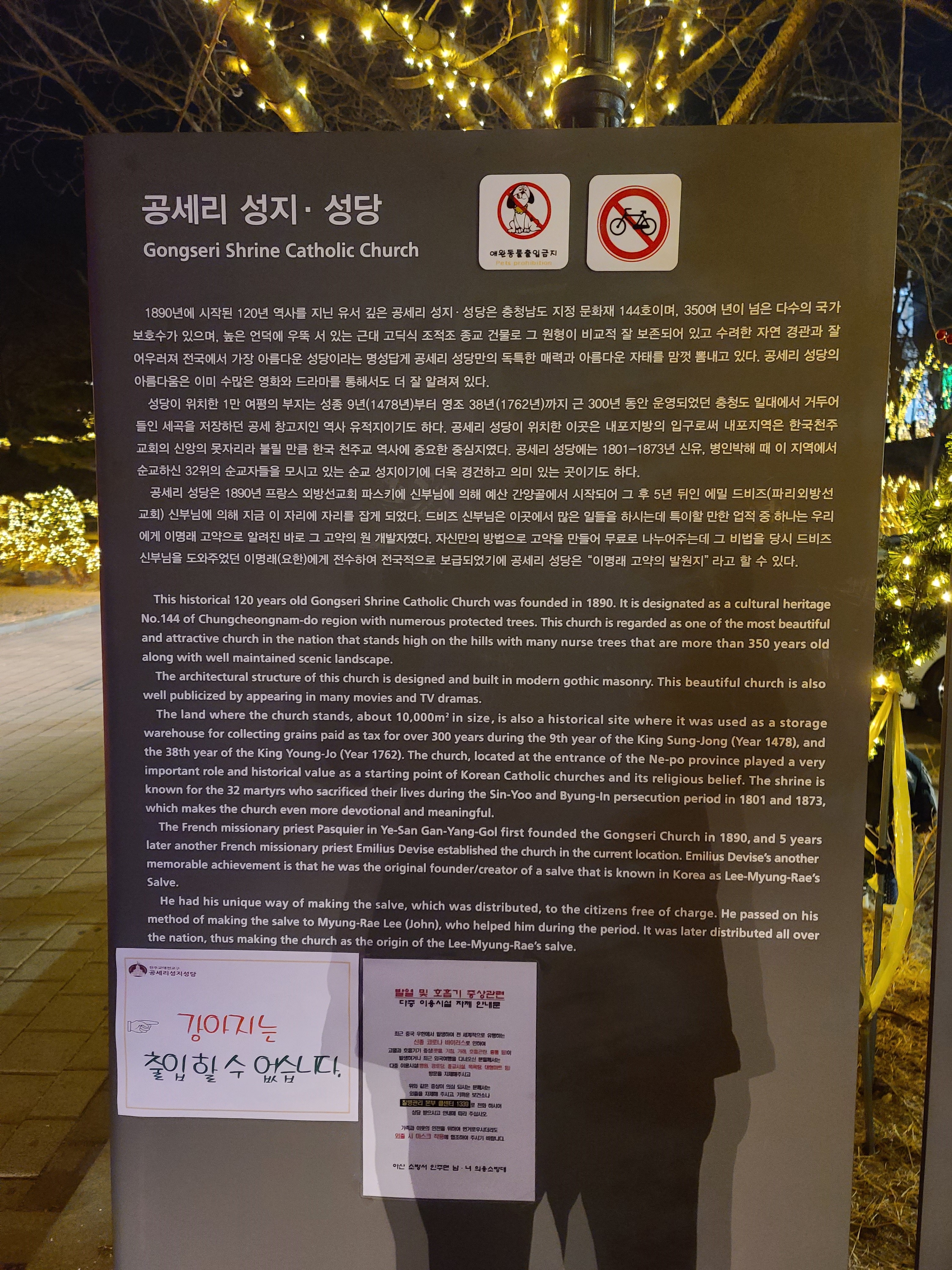 특히나 천주교 신자시라면... 꼭 한 번 방문해보시길 권해드립니다. 또 크리스마스 시즌에 이렇게 아름다운 조명을 단 모습의 야경도 너무도 근사하니 올해 연말에는 한번 거닐어 보시길 바랍니다. 그때쯤이면... 마스크를 벗고, 걸어볼 수 있겠죠?