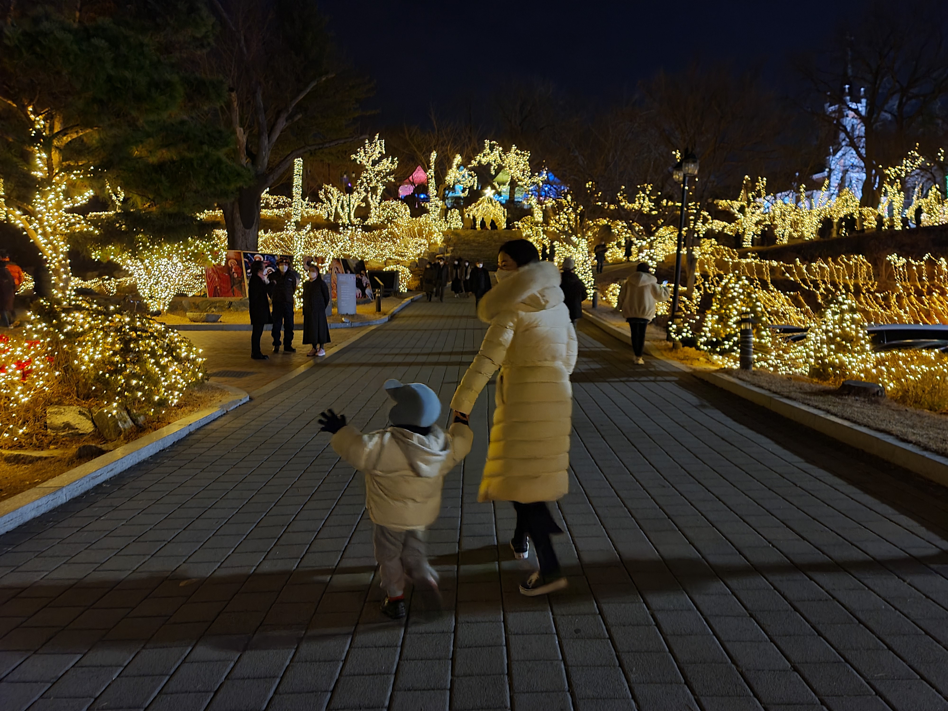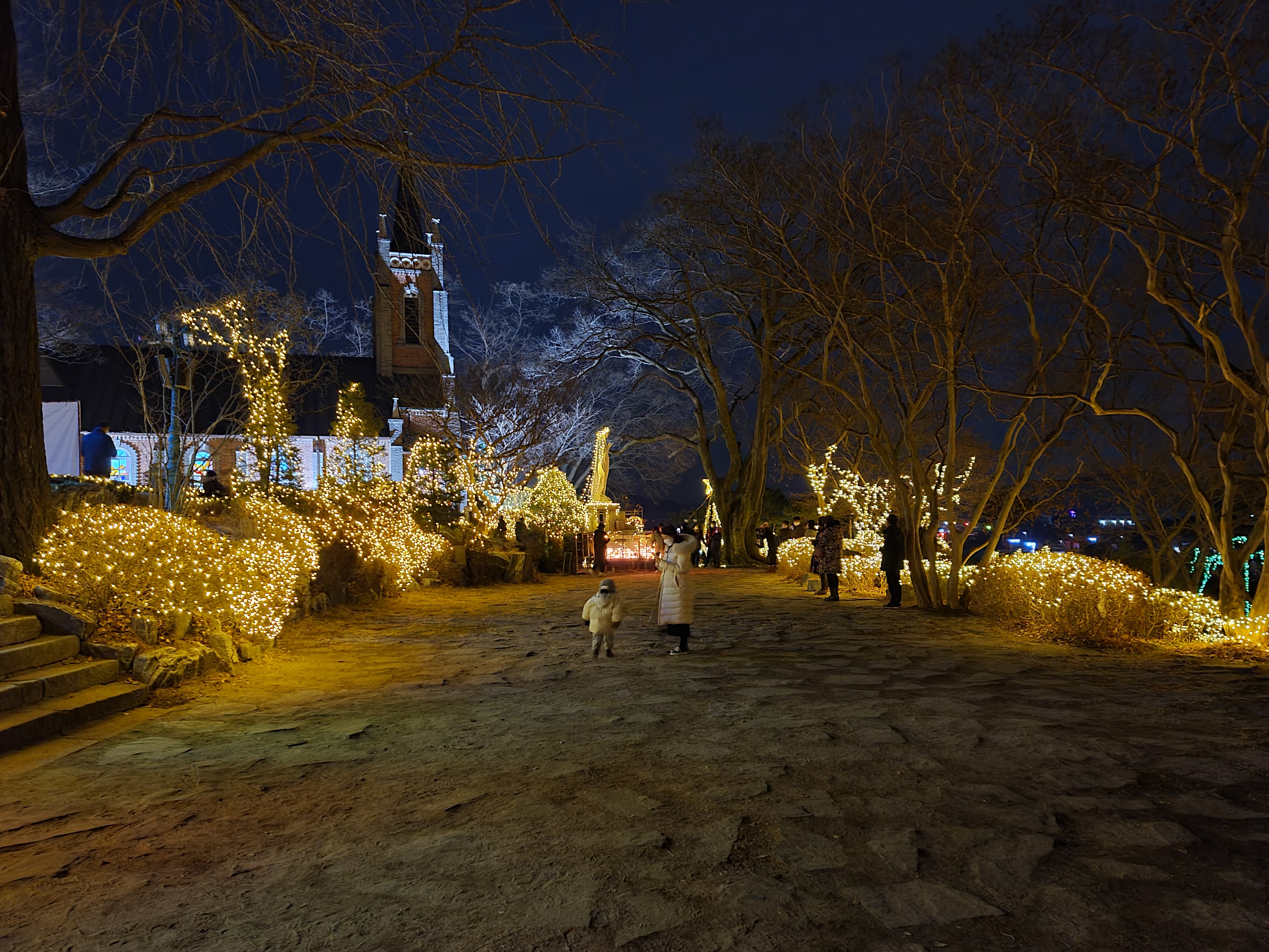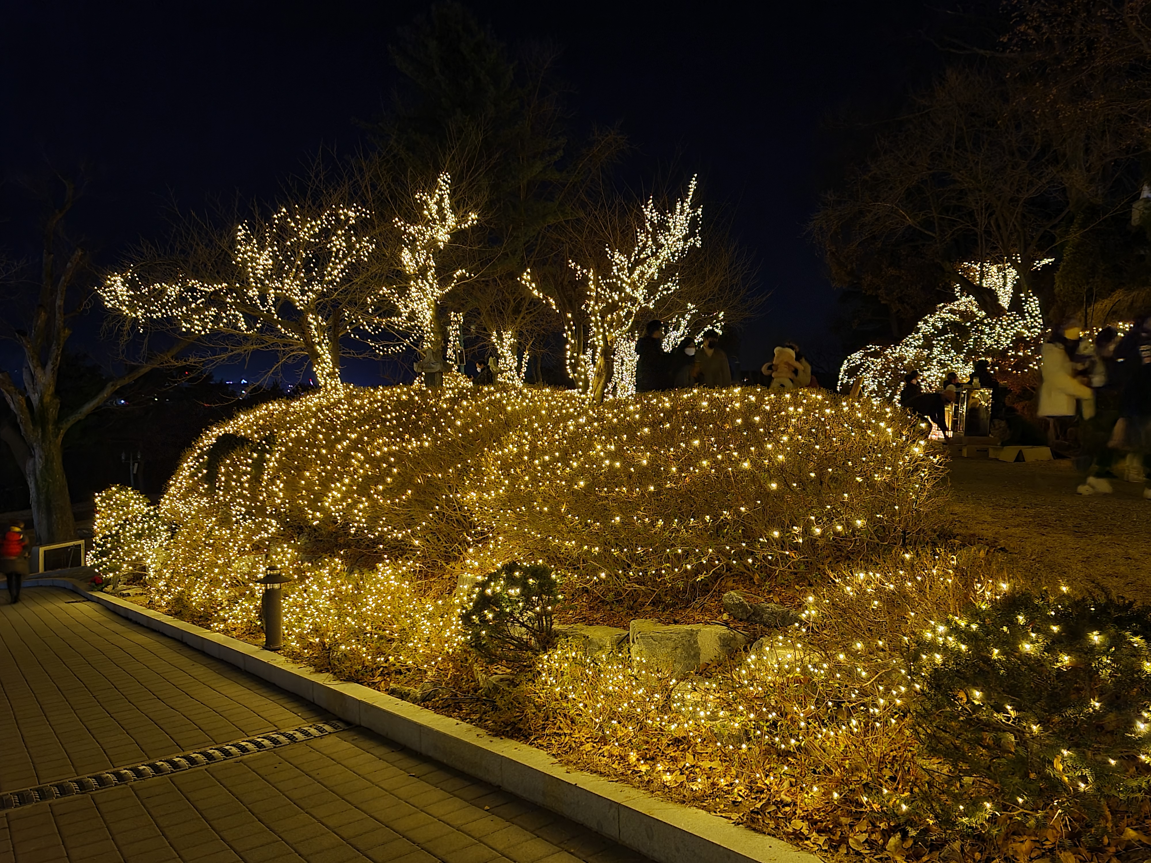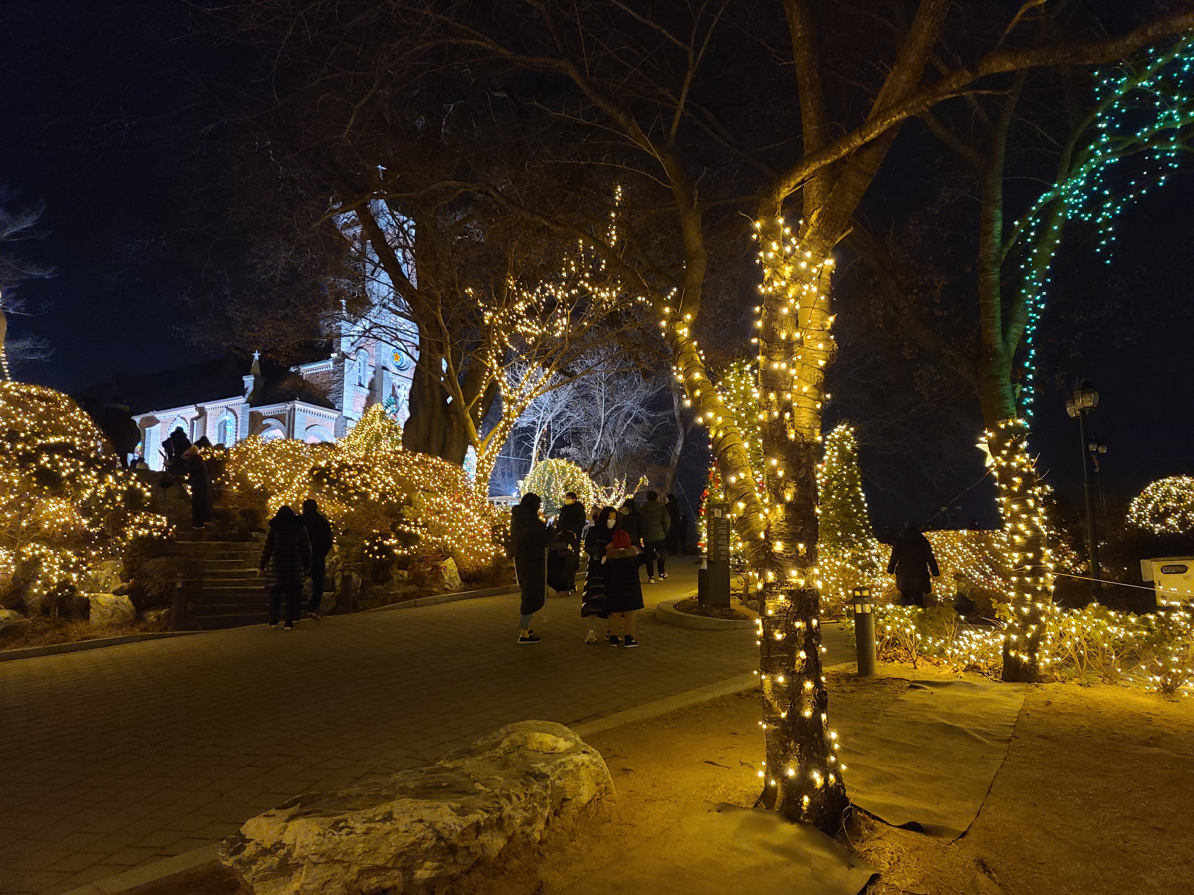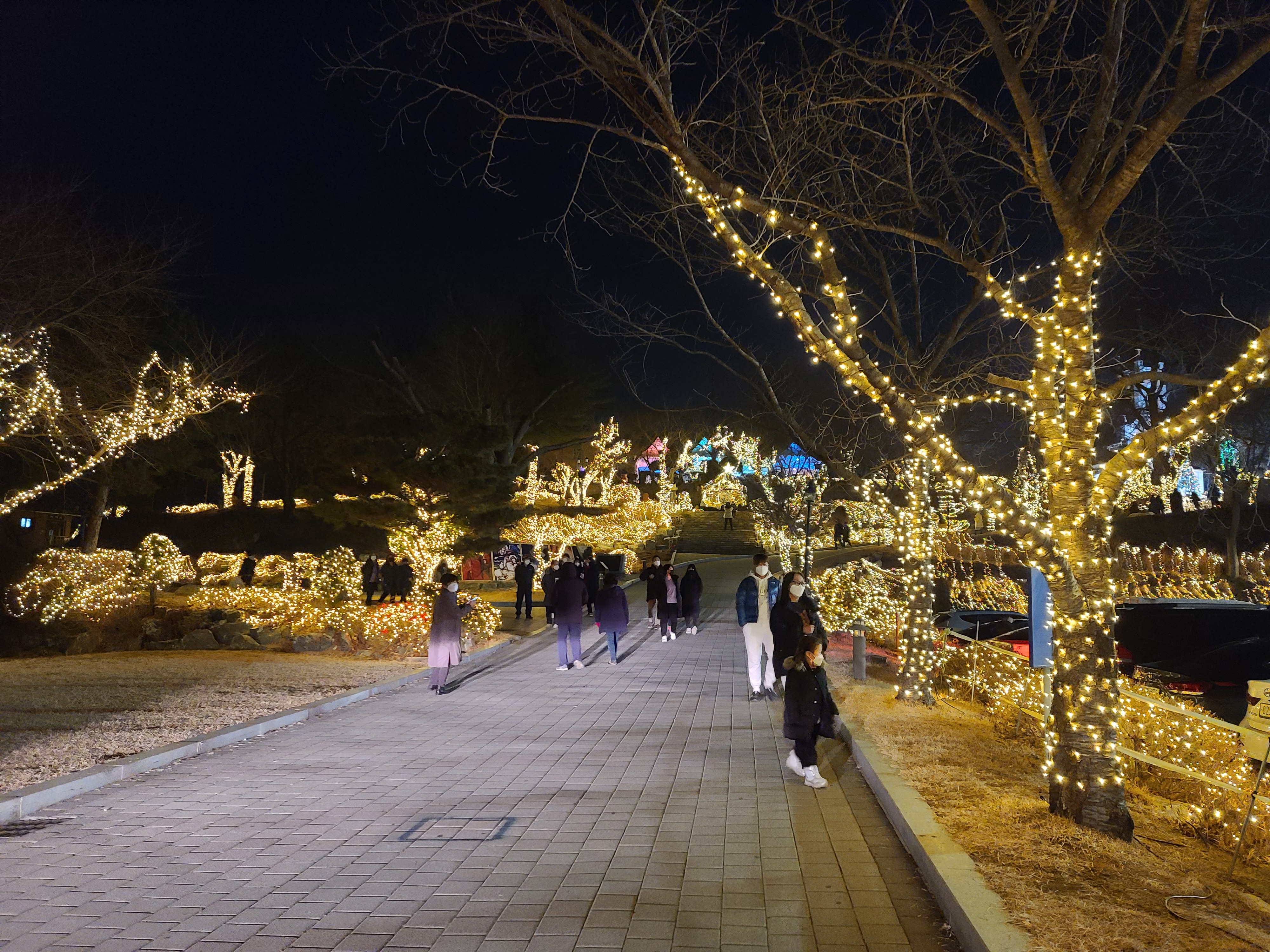 진짜 이쁘긴 하더라고요. 저도 사실 크게 감각적인 사람은 아니지만... ^^ 나무들에 얽혀있는 저 조명들... 하나가 아니라 여러 개가 되니 더욱 근사하고, 매력적이네요. 그러면서 정말 많이들 이것을 준비하기 위해 고생하셨구나라는 생각도 살짝 들었답니다.
