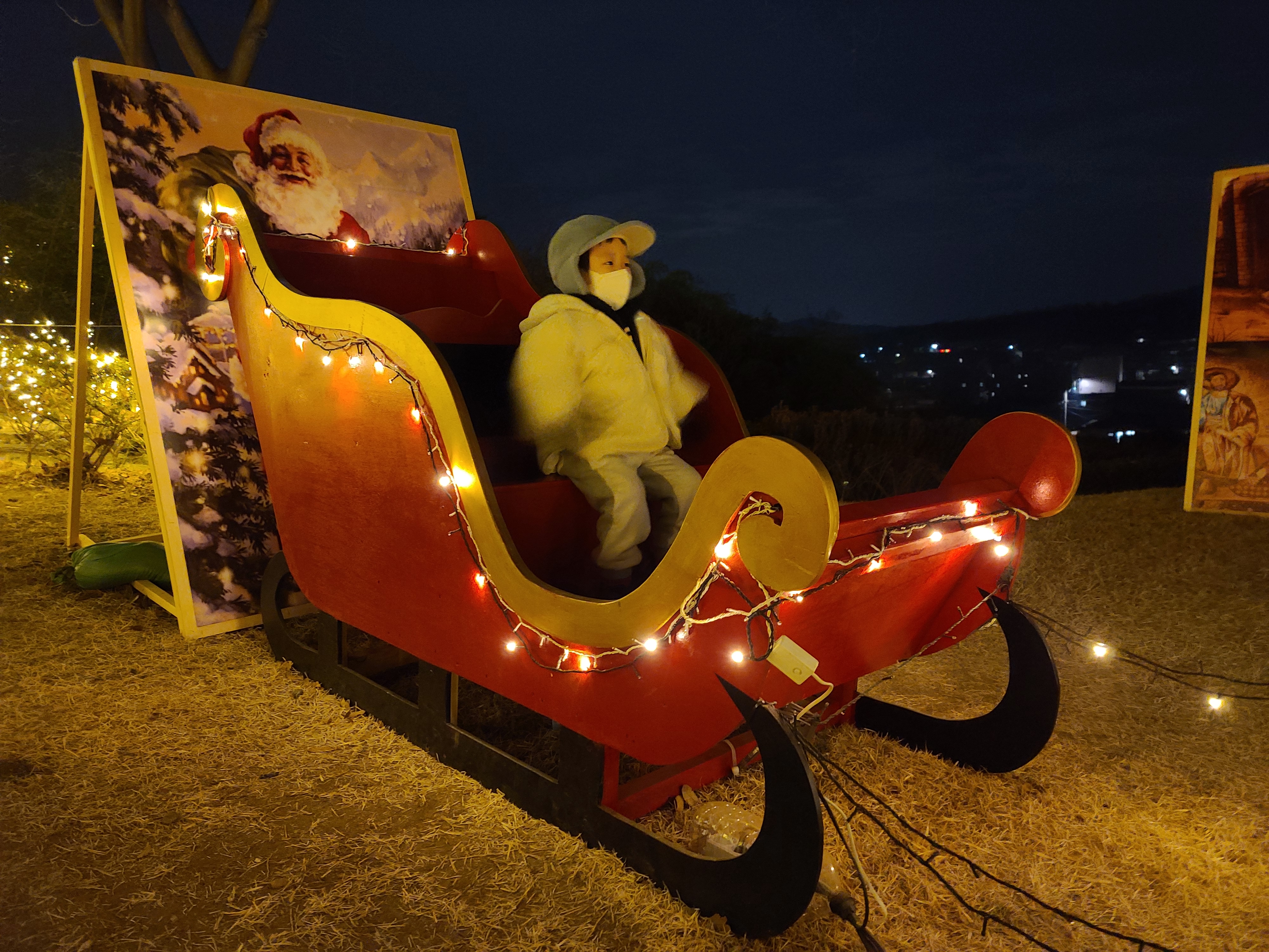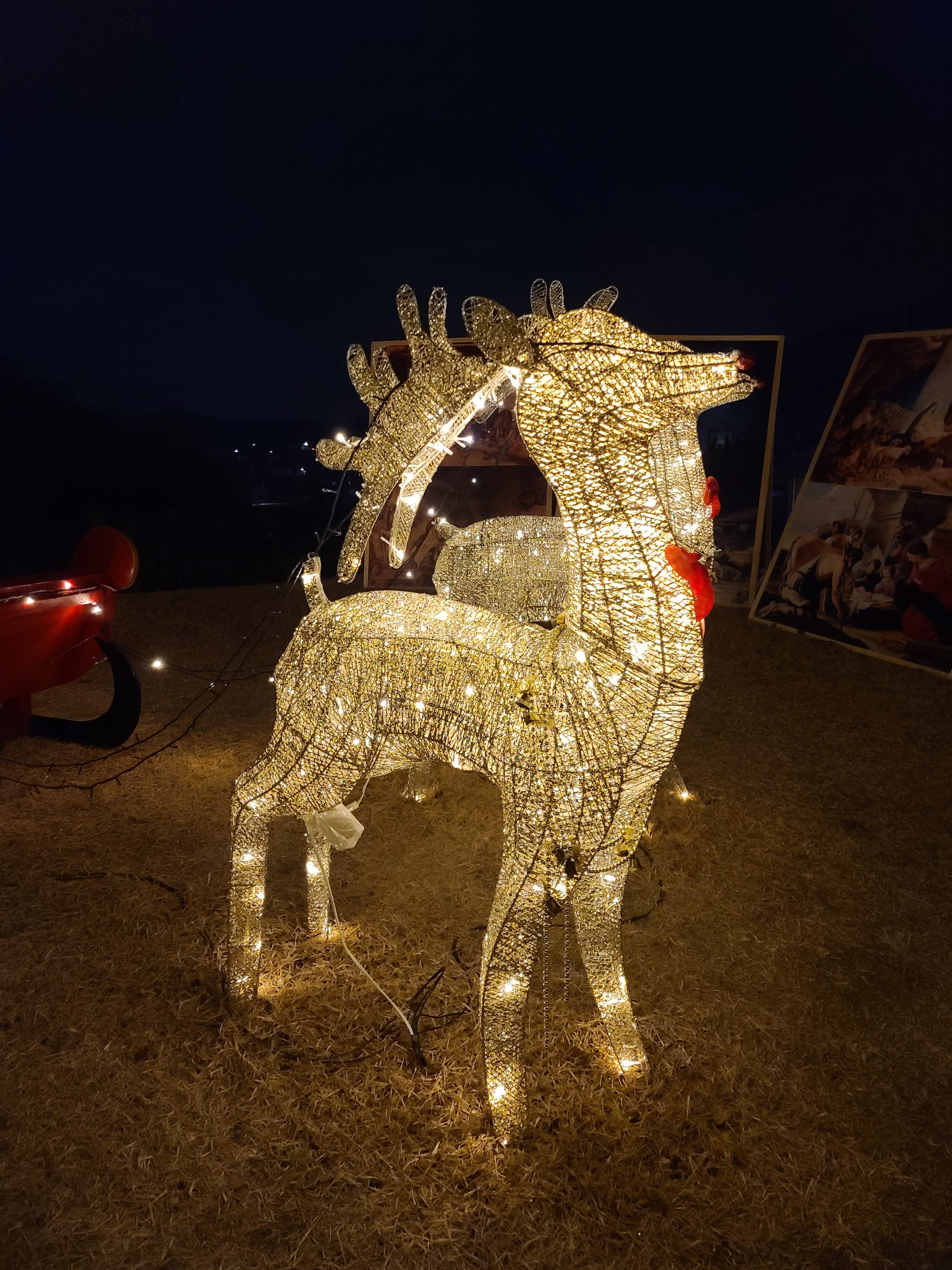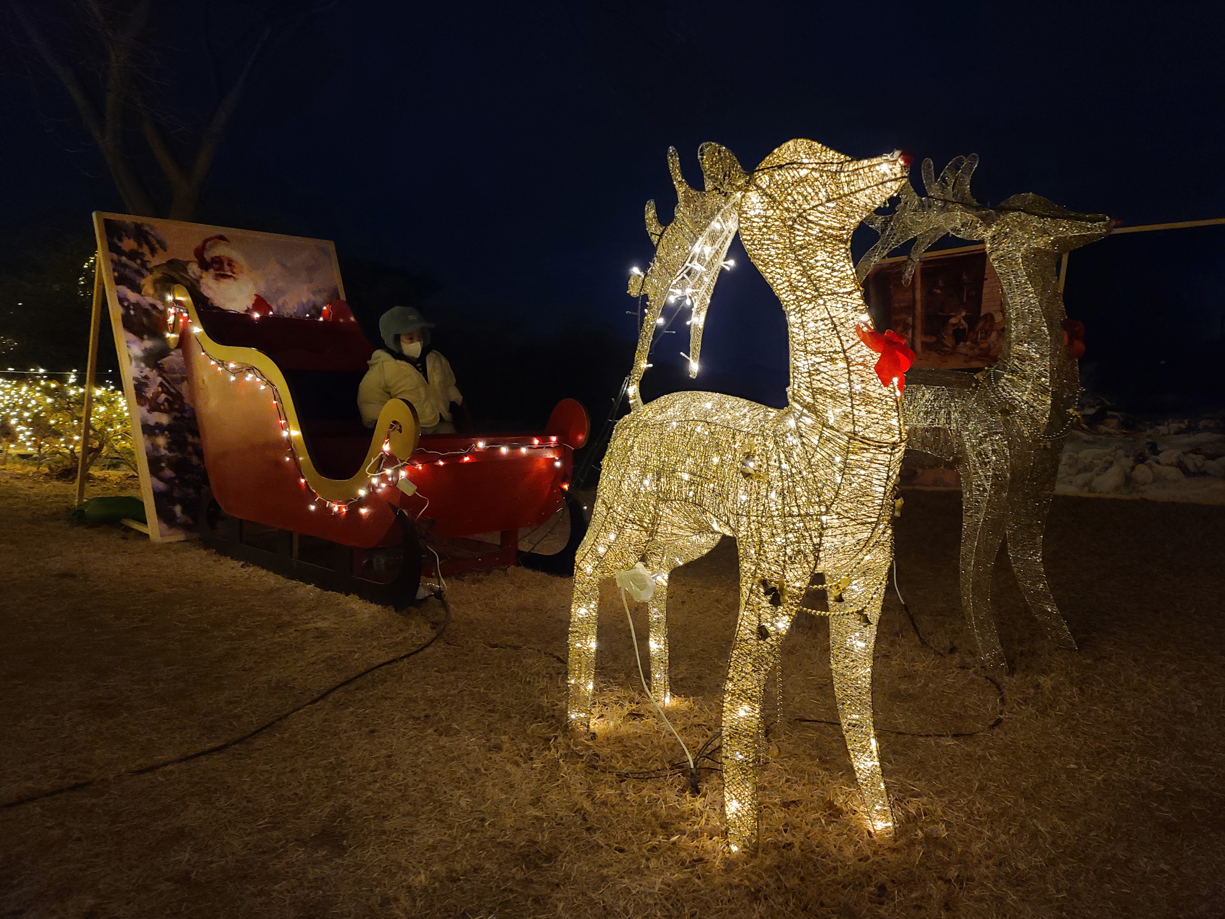불빛이 멋있게 반짝이는 루돌프와 썰매... 야간이라 사진이... 살짝 흐릿하네요.